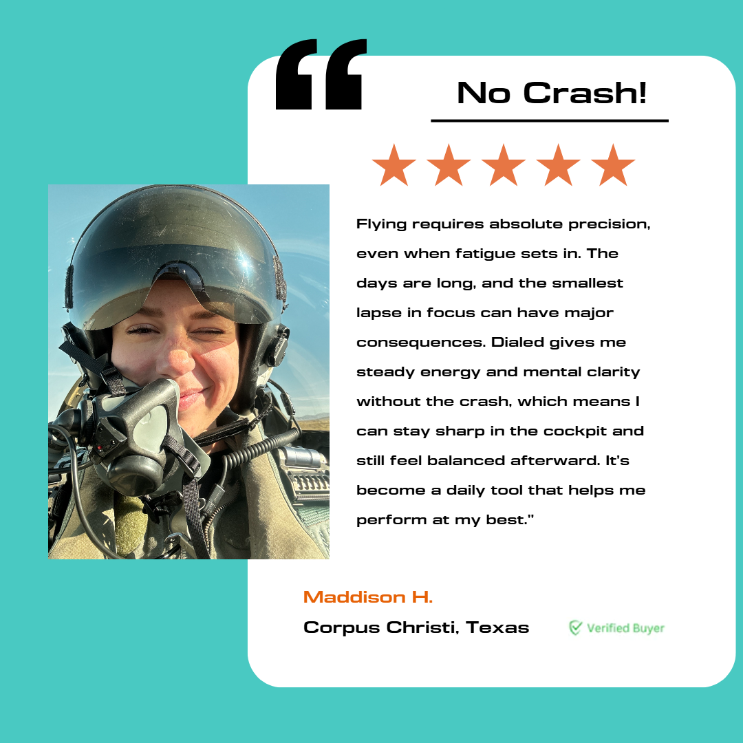 DIALED gives you reinforced energy, focus, and resilience—without crashes, jitters, or compromise.