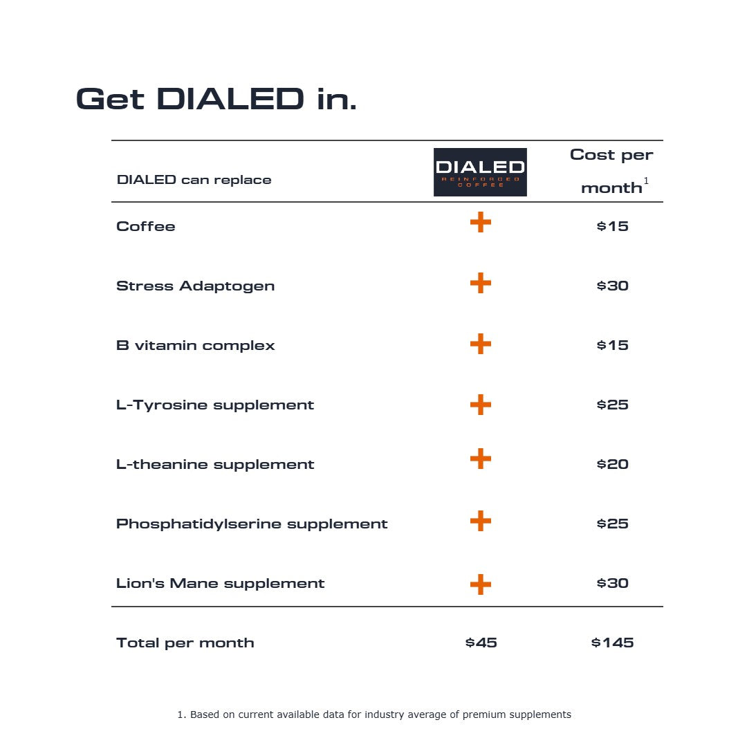 DIALED Reinforced Coffee is backed by scientific analysis and formulated with tested dosages for maximum effectiveness.